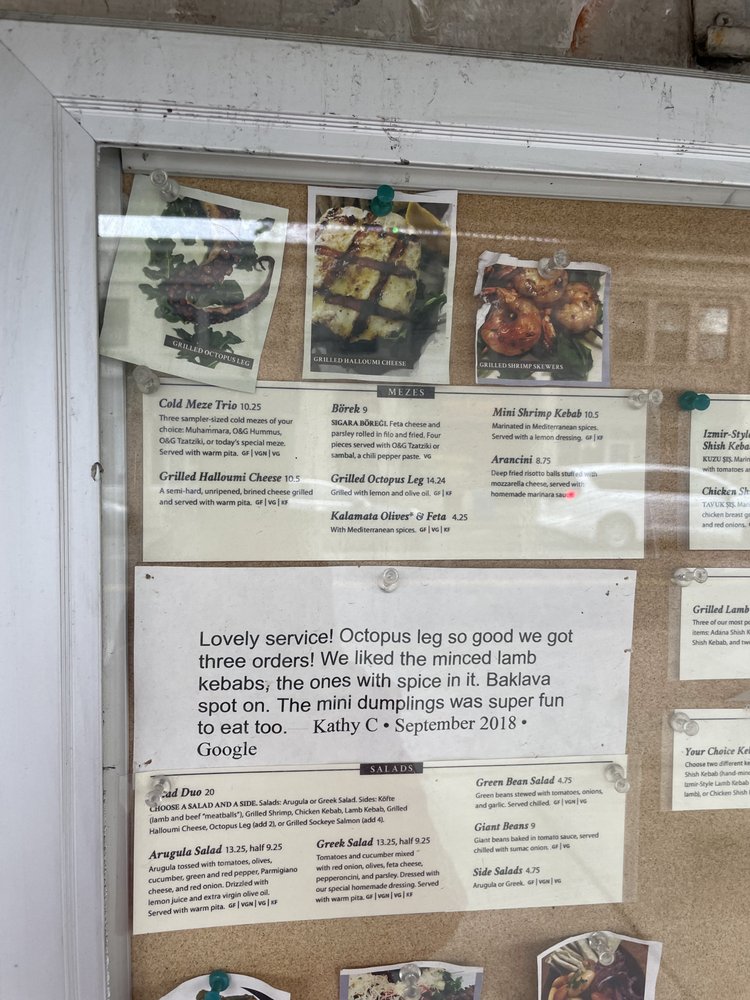 Start your experience with their scrumptious Aegean-Style Calamari or indulge in Deep-Fried Arancini, both showcasing incredible flavors. For entrées, the Adana Duo lamb kebabs are a highlight, complemented by the amazing Olive and Grape tzatziki. Don't miss the Frutti di Mare pasta, brimming with fresh seafood and a garlic white wine sauce for a taste of Italy.