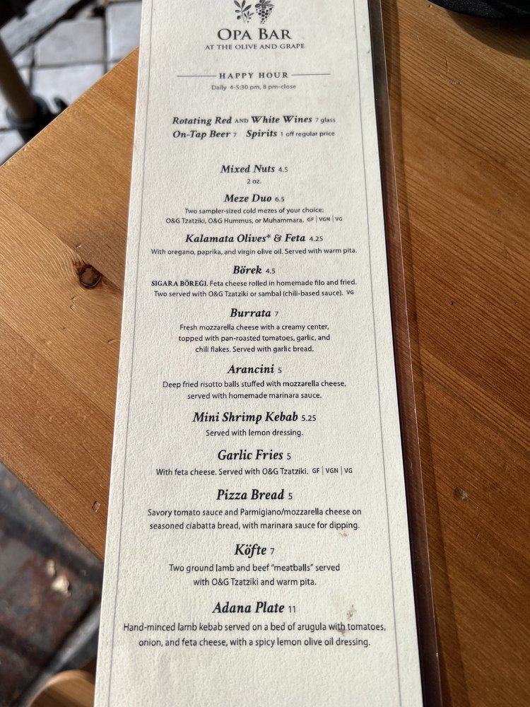 Friendly service enhances your dining experience, with options for outdoor seating, making it a perfect spot for families and groups alike. Come experience The Olive and Grape—where every dish tells a story of Mediterranean tradition!